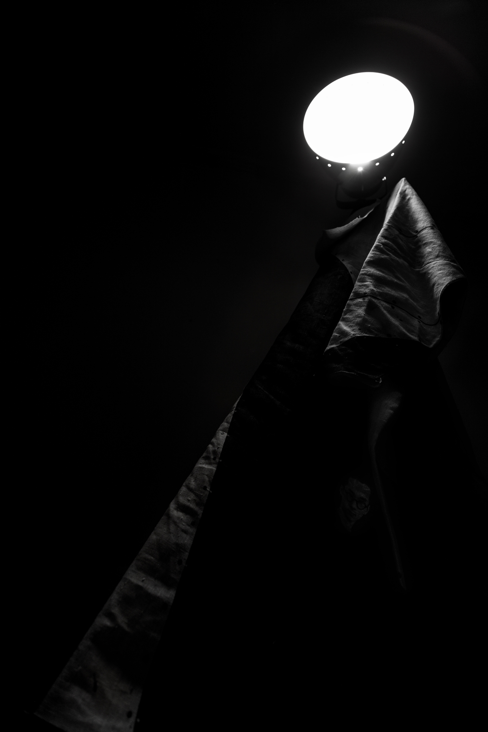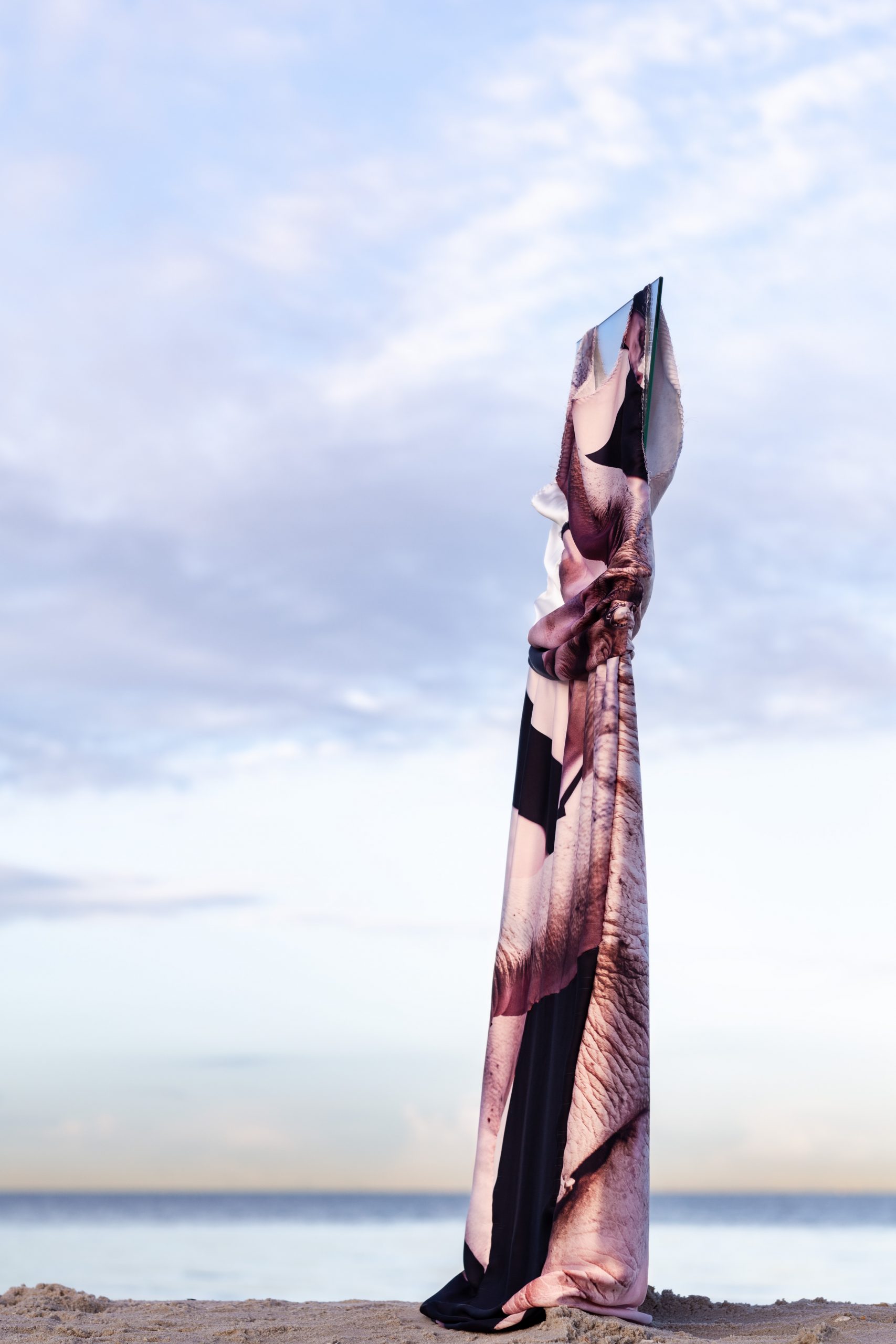 In a second exploration Infinity Mirror [B Side] I investigated the relationship between the clothes and their owner. In a playful way, the clothes that I manufactured for a specific person are worn by objects or draped in a way that they cite the appearance of a human figure. The photographs are abstracted portraits of a person who is not present. A statement of portrait and fashion photography in times of lockdown.